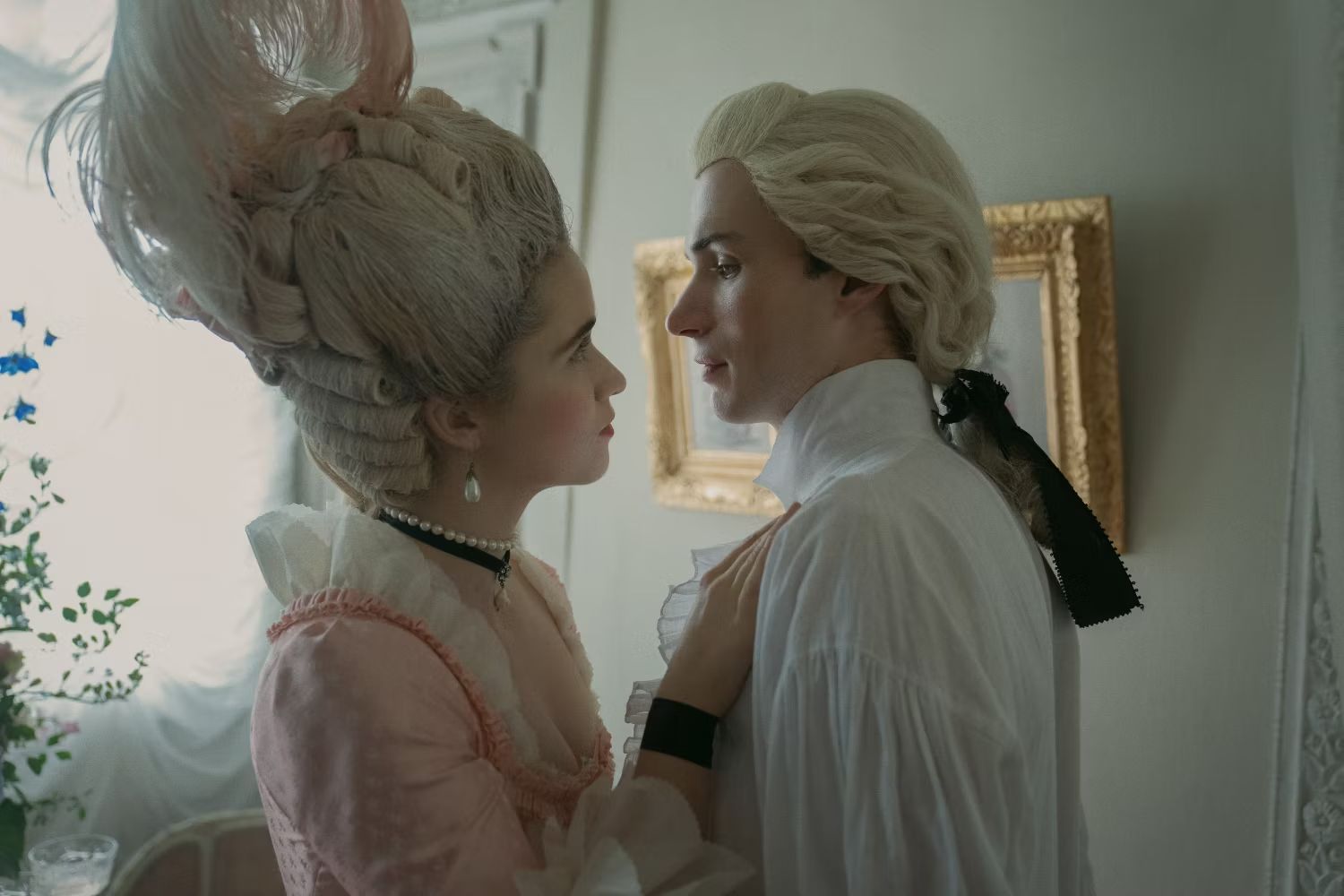 The teaser opens by giving viewers a glimpse of the background of the main protagonists and lovers Camille (Alice Englert) and Valmont while transporting them to the 18th century (Nicholas Denton). The two’s connection immediately becomes heated, with passions rising and intensity burning. But when Camille works to advance in society after being provided a roof over her head by Marquise de Merteuil (Lesley Manville), their love games only grow shadier and more ominous.