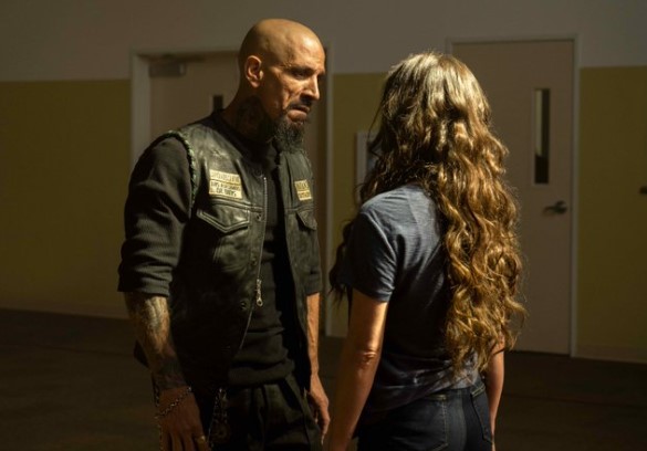 Alvarez and Tig (Kim Coates) finally meet in Los Angeles. Tig tells Alvarez that the war began when Alessandro Montez’s kutte and body were discovered on Santo Padre territory. Alvarez claims he has no knowledge of the matter, but it’s apparent he’ll look into it further. The talk then shifts to the topic of war, with Alvarez and Tig proving to be polar opposites. The former seems weary of fight and death, while the latter is ecstatic at the prospect. We also find that Terry’s sponsor is the younger brother of San Bernardino Sons of Anarchy leader Les Packer. With a hug, the two-part ways, knowing that another time they meet, maybe it’s not so pleasant.
