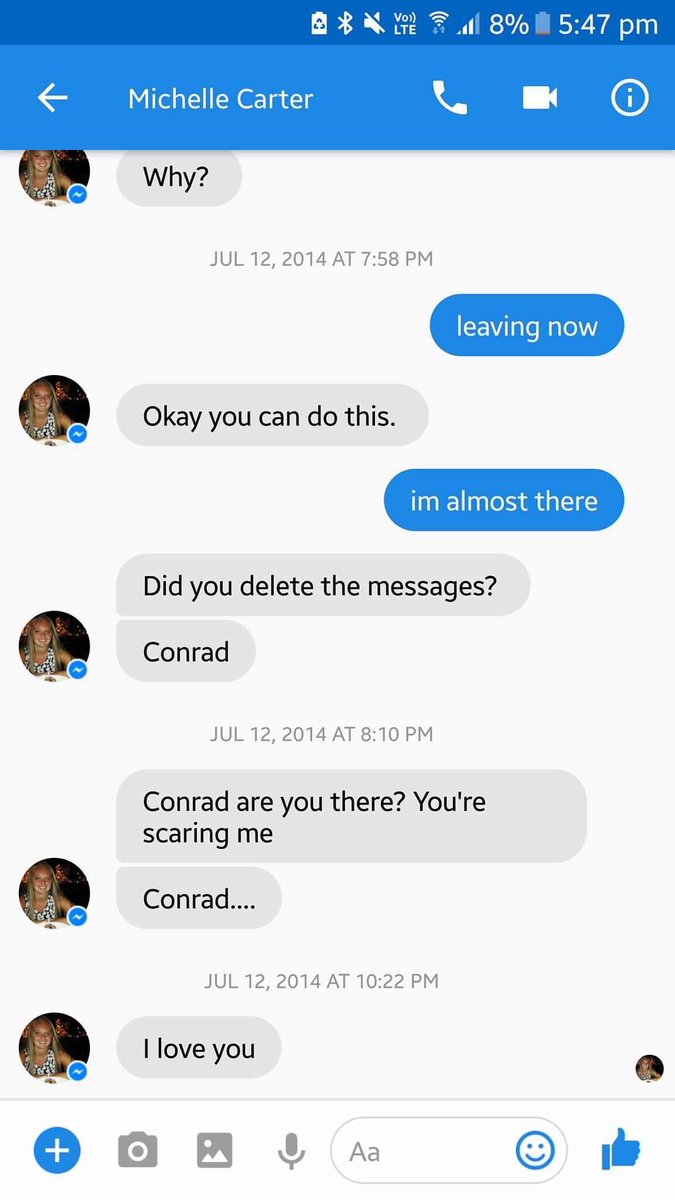 Carter: “Conrad, of course I will be there for your family. I will help them as much as I can to get thru this, ill tell them about how amazing their son/brother truly was”