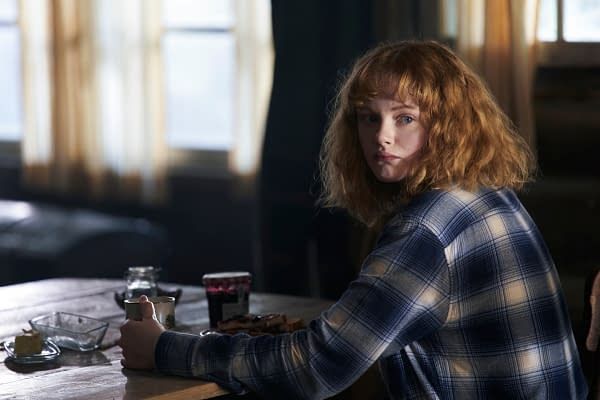 The two McLusky brothers walk out arm in arm, still alive, as Mike’s mother waits outside the prison with tears in her eyes. Mike takes a short step away from his grieving mother and sibling, exhaling a breath of relief once he’s alone. Mike returns to his cabin with the bottle of champagne that Iris had requested earlier in the day before either of them had heard of the jail uprising. She tells him that she recognizes that those who have mistreated her have torn portions of her soul from her, but that she hopes her soul will grow again. Season 1 ends on a sad but hopeful note, with Mike and Iris laying on the floor of his cabin together.