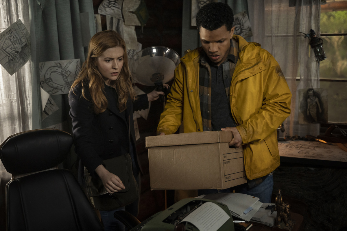 - Nancy Drew — “The Secret of Solitary Scribe” — Image Number: NCD203b_0219r.jpg — Pictured (L-R): Tunji Kasim as Nick and Alex Saxon as Ace — Photo: Colin Bentleyl/The CW — © 2021 The CW Network, LLC. All Rights Reserved.