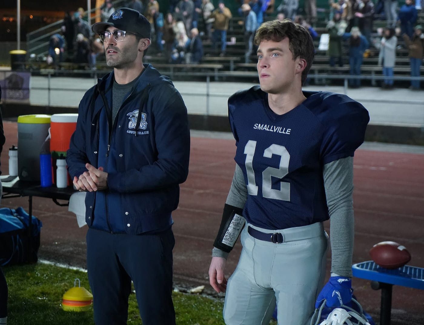 Kyle Cushing’s infidelity was revealed at Sarah’s quinceanera in this week’s episode, and according to the photos, (watch it below) the show will deal with the ramifications of that incident. Lucy Lane (Jenna Dewan) is also shown in the images, sitting in the stands with her sister Lois and father at a Smallville football game. It’s fascinating to see her at the athletic event with her family, given her recent meeting with Lois.