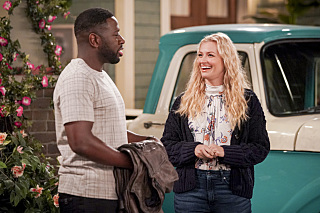 - “Welcome to the Commercial” – Pictured: Sheaun McKinney (Malcolm Butler) and Beth Behrs (Gemma Johnson). When Calvin decides to film a local TV commercial for his business, he enlists Dave, Tina and Marty to help, but it doesn’t take long for creative differences to arise. Also, Malcolm considers making a grand gesture when his girlfriend, Sofia (Edy Ganem), is offered her dream job abroad, on THE NEIGHBORHOOD, Monday, March 9 (8:00-8:30 PM, ET/PT) on the CBS Television Network. Photo: Greg Gayne/CBS ©2020 CBS Broadcasting, Inc. All Rights Reserved.